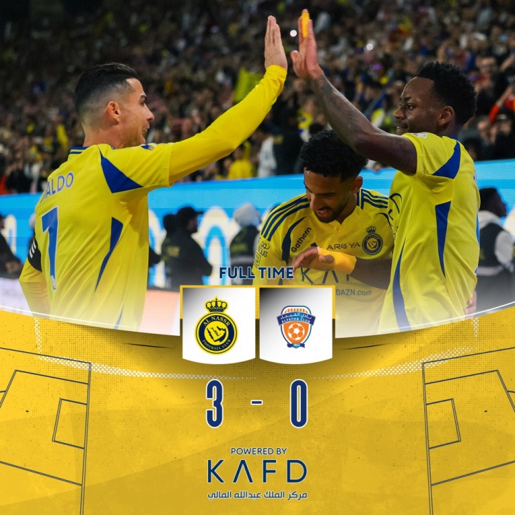 沙特联第19轮,利雅得胜利3-0战胜费哈,C罗破门,杜兰梅开二度。