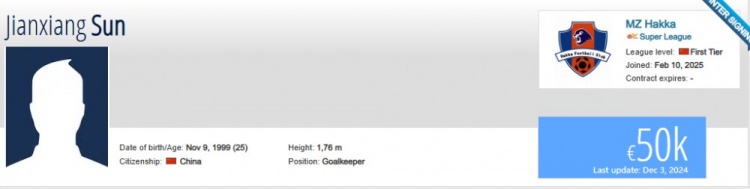 2月10日讯 根据德转页面信息,前沧州雄狮门将孙健祥已自由转会到梅州客家。