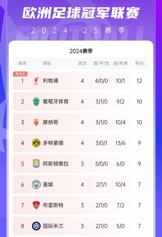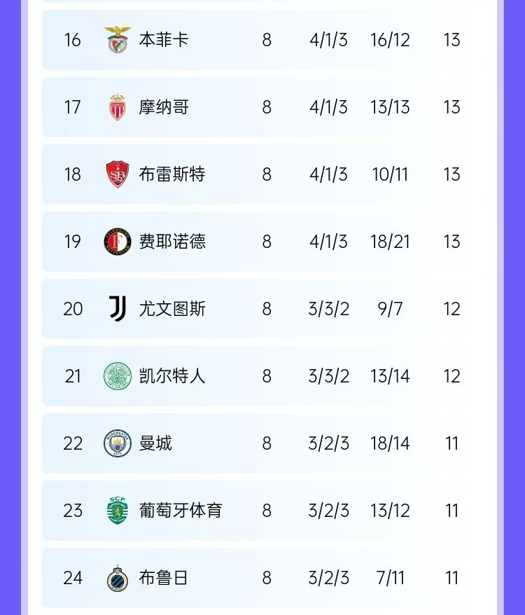 最新欧战积分:英超、意甲、西甲前三,德甲超越葡超排名第四