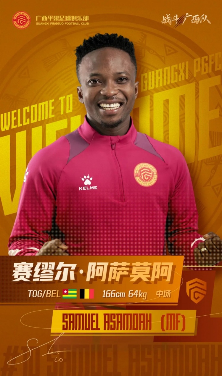 新赛季,新形象,新征程!欢迎塞缪尔·阿萨莫阿加盟广西平果足球俱乐部,2025赛季,愿我们一起携手并进,发挥出色的表现,为广西而战!