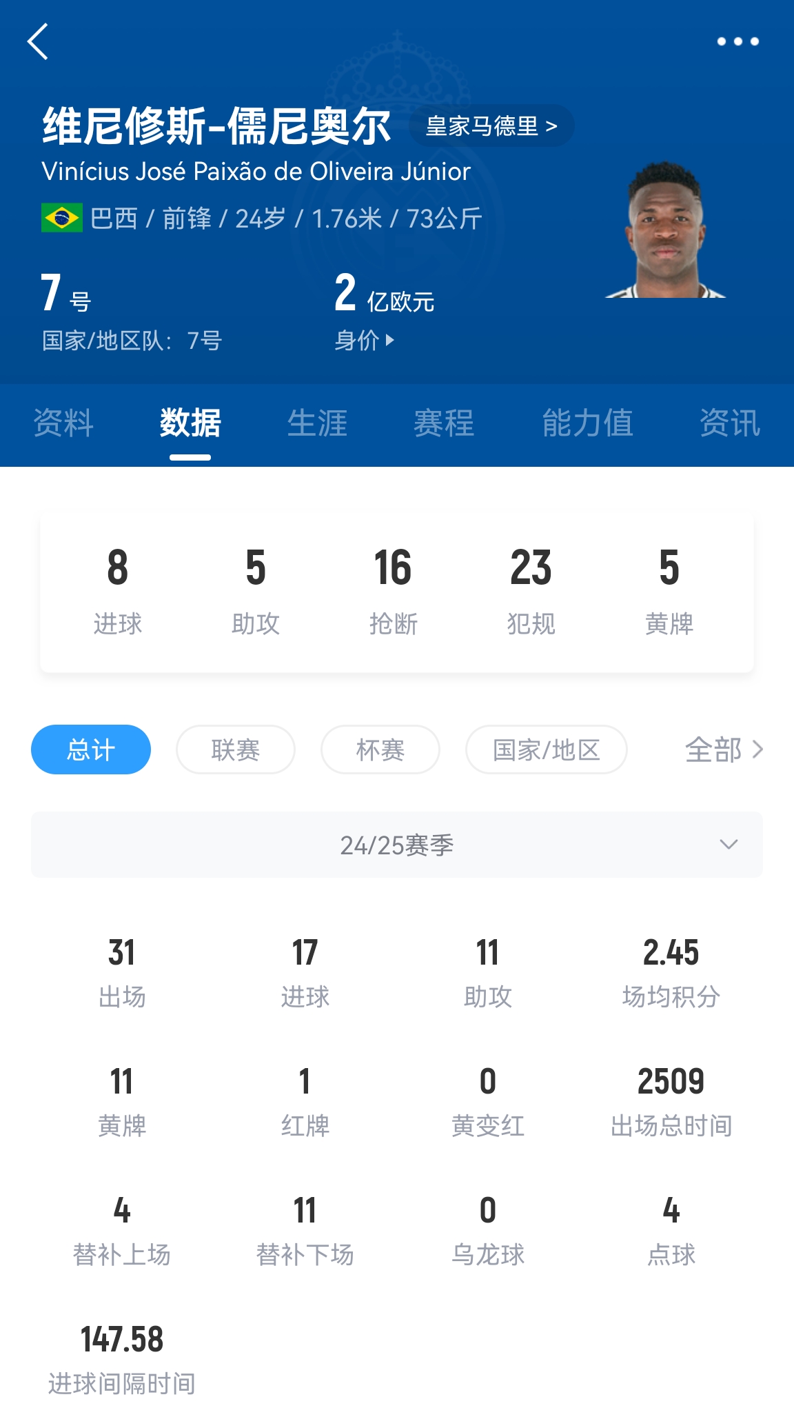 事实上,前一天对阵曼城赛后,维尼修斯在接受转播方采访时被问到沙特的报价问题,维尼修斯当时表示:“我也不知道任何情况,没有人和我谈过,我需要和俱乐部主席谈一谈,希望能够在待在皇马很长时间,这场比赛给我们带来了很多东西,我想创造历史。”