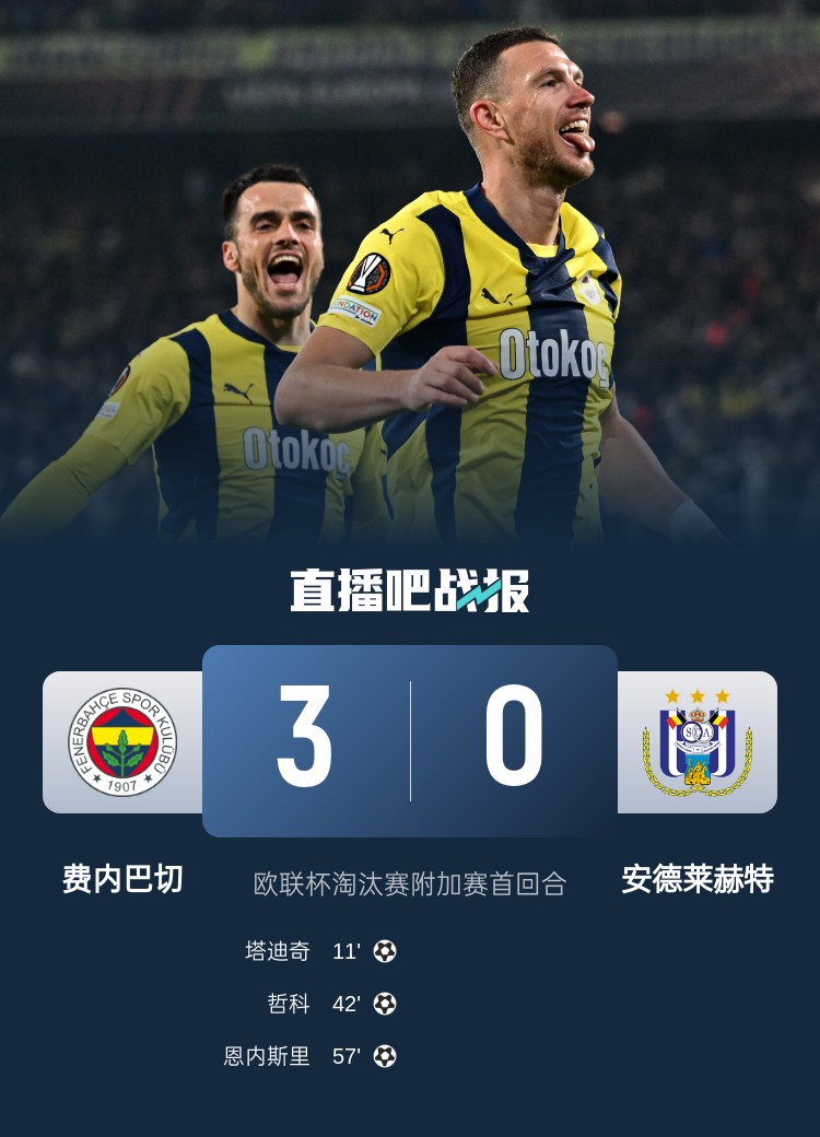 欧联-费内巴切3-0安德莱赫特占先机 各项赛事4连胜&13场不败